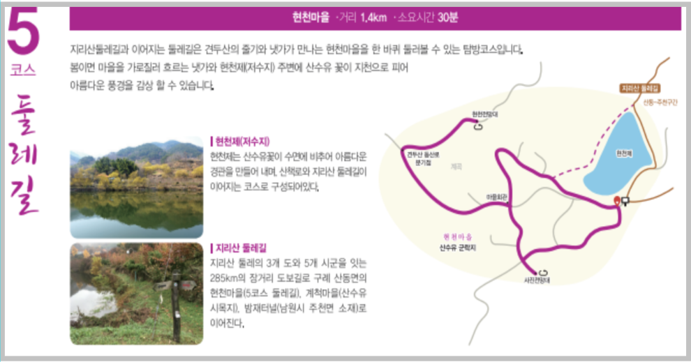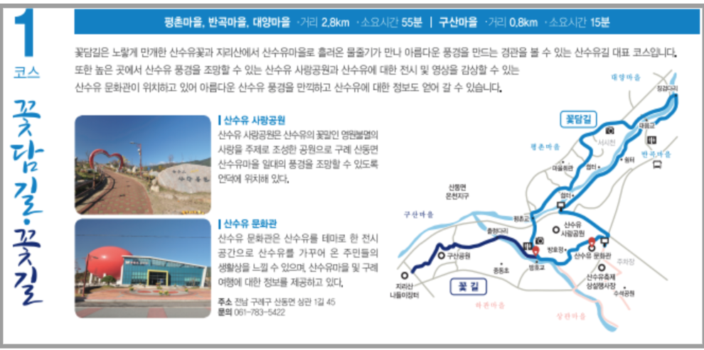 ▶ 1코스 : 꽃담길·꽃길 /산수유길을 대표하는 코스(3.6km), 1시간 10분 소요됨