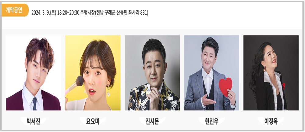 ● 개막식 : 2024. 3. 9(토) 18:00 주 행사장(전라남도 구례군 산동면 좌사리 831)