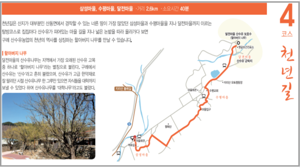 ▶ 4 코스 : 천년길/ 산수유나무 중 가장 오래된 고목 '할아버지 나무'가 있는 곳(2.6km), 40분 소요