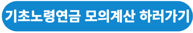 여기서 소득인정액이란? 본인의 월 소득평가액과 재산의 월 소득환산액을 합한 금액입니다. 2024년 선정 기준액으로 단독가구인 경우에는 월 2,130,000원이고 부부가구인 경우에는 월 3,408 ,000원 이하라고 합니다. 부부 중 한 사람만 신청해도 부부가구에 해당된다고 합니다. 기초노령연금 수급조건에 해당되는지 확인해 보시려면 아래에 있는 기초노령연금 모의계산 버튼을 통해 확인해 볼 수 있습니다.