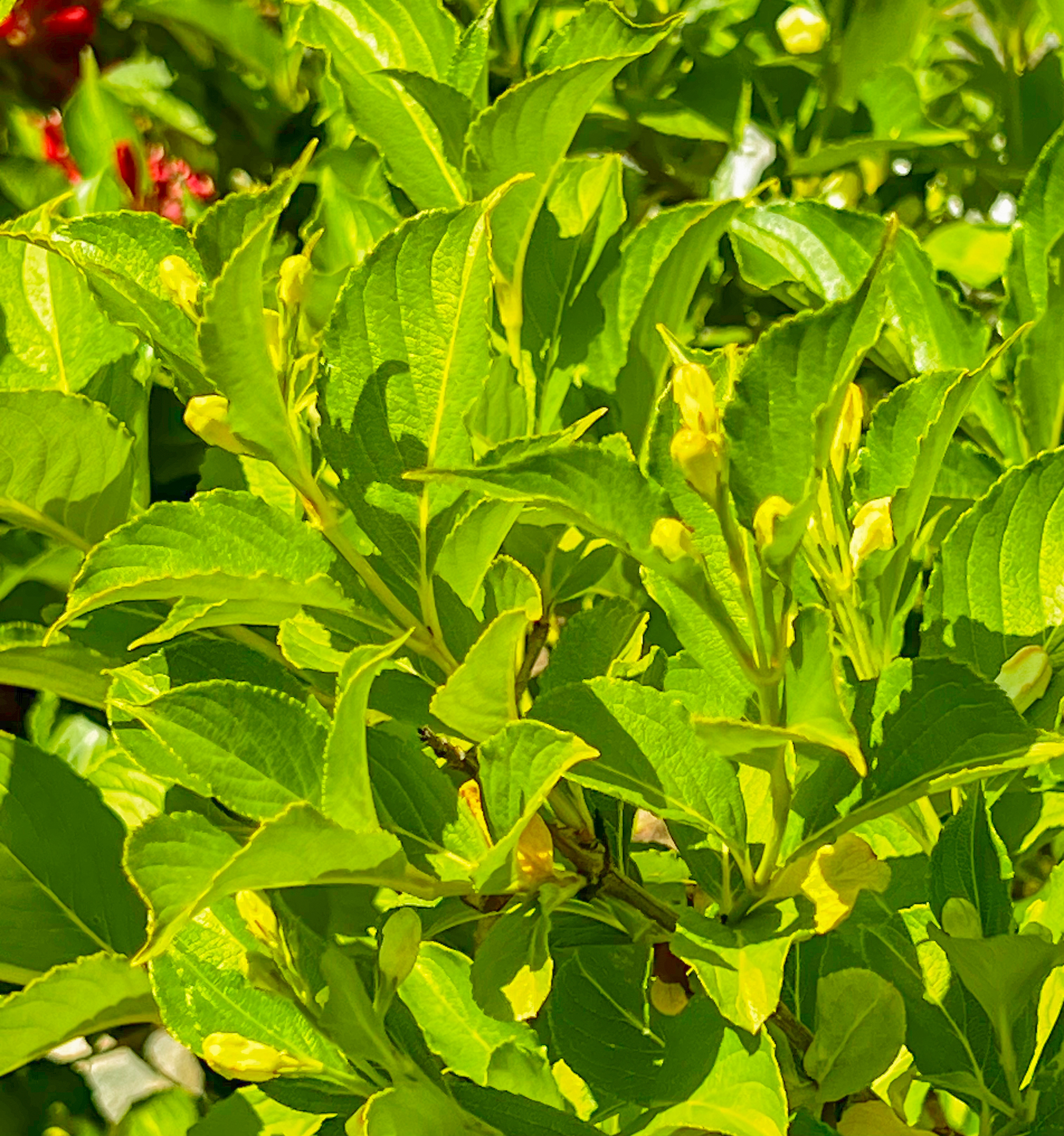 잎은 마주나고 달걀모양 타원형으로 꽃은 5월에 붉은색으로 줄기 끝에서 여러 개의 꽃송이가 종처럼 달립니다. 열매는 9월에 익으며 번식은 삽목이나 포기를 나누어서 분주로 많이 번식을 합니다. 대기오염에 강해서 공원과 도로변에 조경수로 인기 있는 나무입니다.