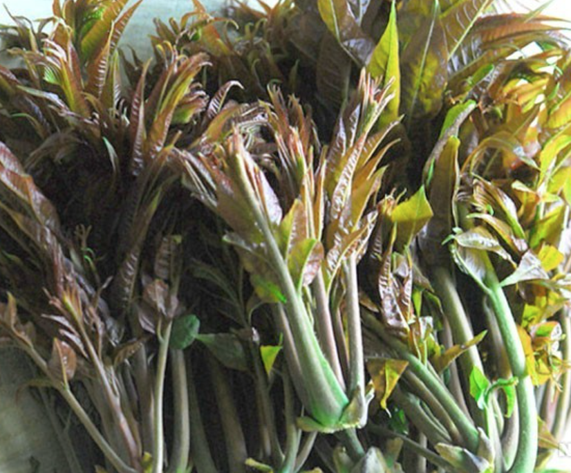 초피나무 | 초피나무의 매운 성분인 '산쇼올' 열매껍질에 많이 들어 있어서 항균, 이뇨, 혈압 강하 작용을 한다고 함. 물고기 비린내 같은 냄새를 잡아주며 식욕을 돋우는 작용을 함. | 가죽나무 | 가죽나무 잎에는 당질, 단백질, 지질 및 섬유소와 철분, 인, 무기질이 함유되어 있다. 열량이 높으며 영양소가 골고루 들어 있음. |
