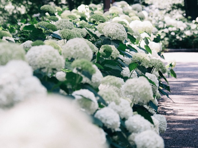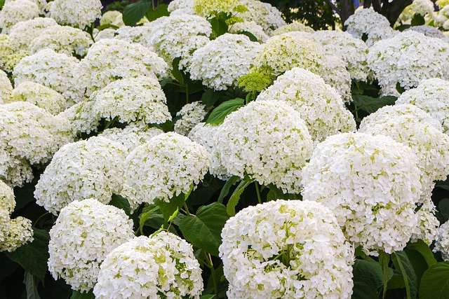 부드러운 수국 또는 야생수국으로 알려진 높이는 2m까지 자라며 여러 줄기 관목으로 미국동부가 원산지입니다. 이 꽃은 다른 수국종류와는 달리 토양의 성분에 영향을 받지 않고 꽃은 흰색으로 피다가 점점 연한 녹색으로 변하여 시간이 지남에 따라 연한 갈색으로 바뀔 수 있습니다. 이 꽃은 줄기와 꽃이 땅에 닿을 정도로 무거워서 먼 곳에서도 쉽게 알아볼 수 있는 꽃입니다.