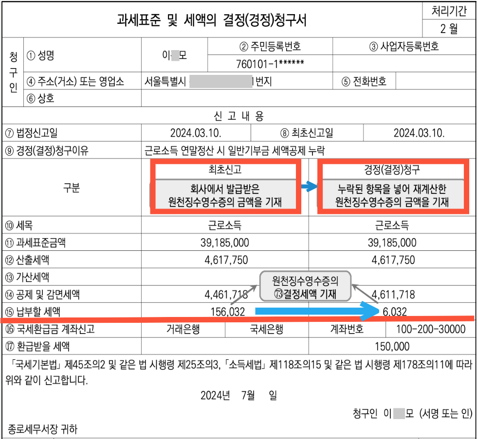 ✅ 일반기부금이 누락되어 경정청구로 납부세액이 줄어든 사례