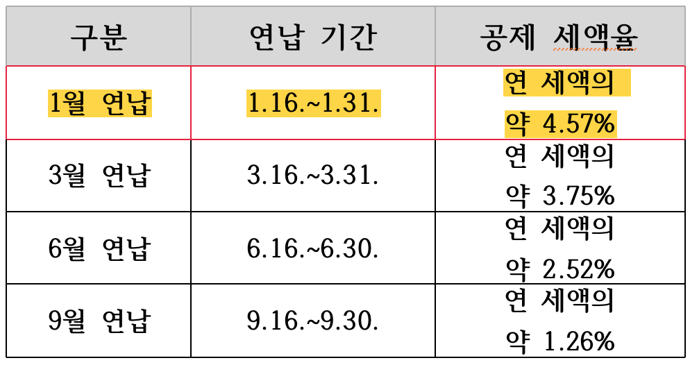 ▶ 1월 연납 : 1월 16일부터 1월 31일까지
