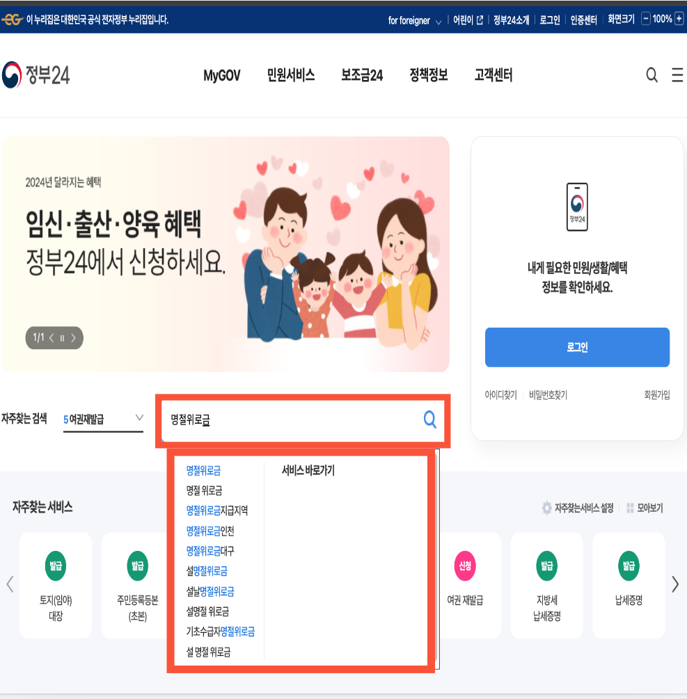 2024 설날을 맞이해서 정부와 지자체에서는 복지서비스를 지원받고 있는 대상자에게 따뜻한 명절이 되도록 현금으로 최대 10만 원까지 명절위로금을 지원해 주고 있습니다. 지자체별로 지원해 주는 정부24 명절위로금 확인하는 방법을 안내해 드리겠습니다.