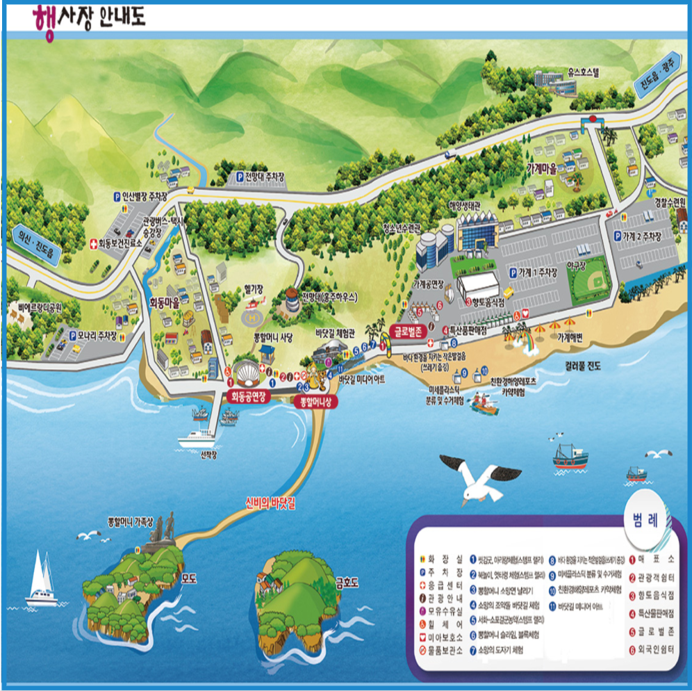 진도 신비의 바닷길 축제장 안내도 및 주차장