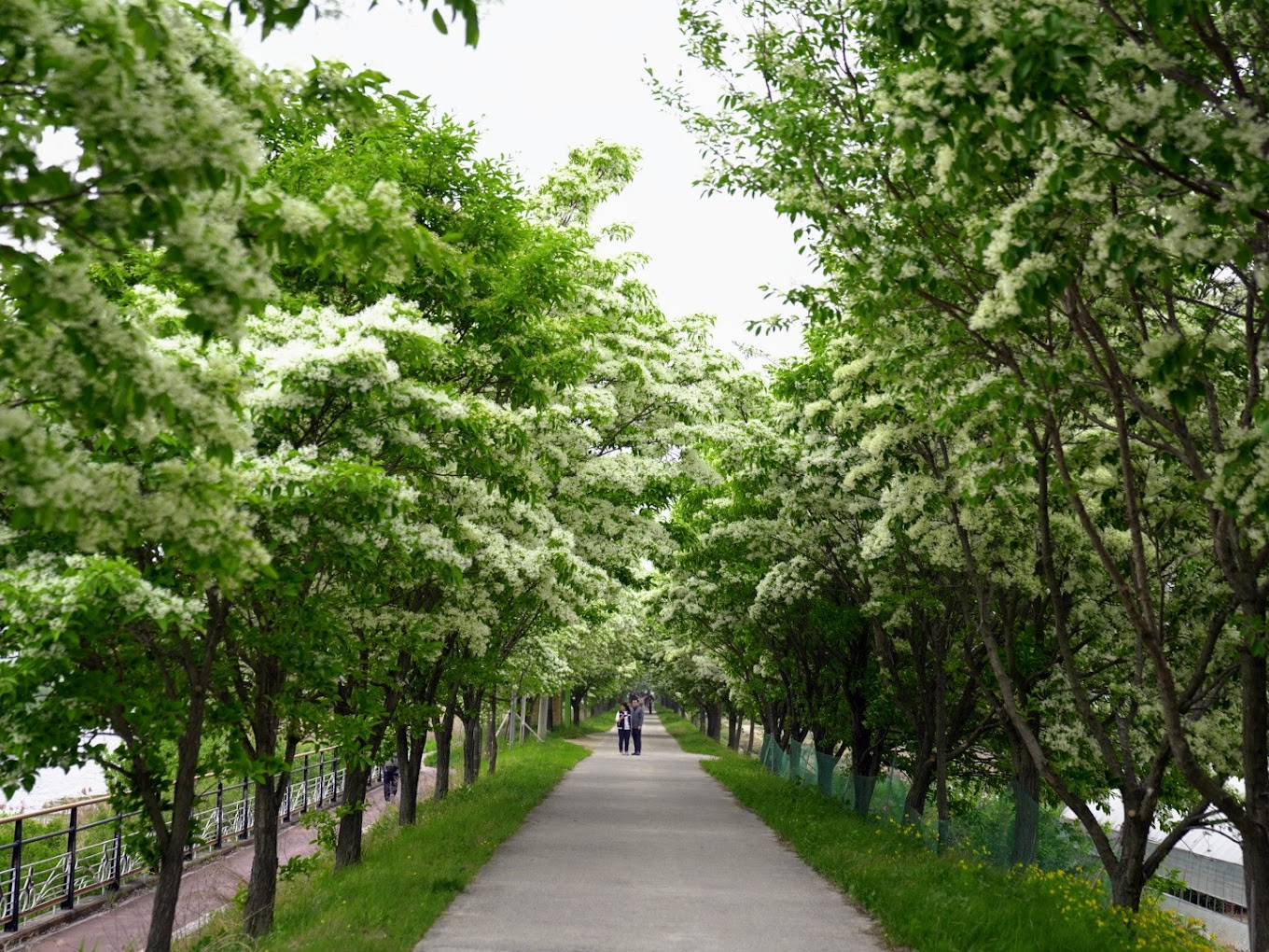 백곡천을 따라 길게 이어진 이팝나무 길은 무려 3km 정도 되며, 이팝나무길 양옆으로는 백곡천이 흐르고 모내기를 준비하는 풍경도 볼 수 있습니다. 전형적인 시골풍경과 이팝꽃으로 덮인 꽃 터널을 여유롭게 즐기면서 산책해 보시기를 추천드립니다.
