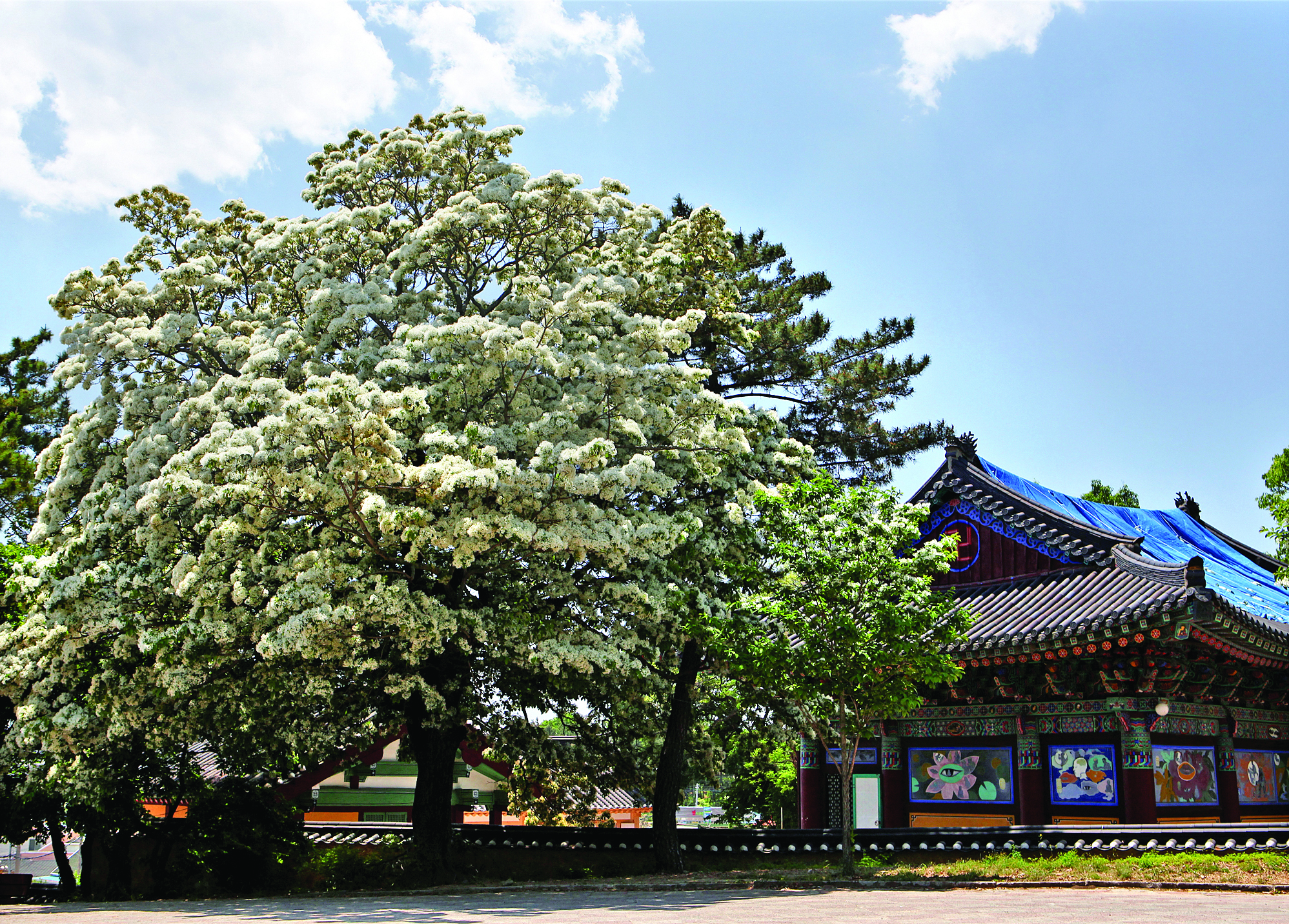 포항 흥해향교 이팝나무 군락은 천연기념물 제561호로 지정되었으며, 고려 충숙왕 때 흥해향교 건축을 기념으로 심은 이팝나무의 씨가 번식되어 군락을 이루고 있습니다. 해년마다 5월이 되면 활짝 핀 하얀 이팝나무꽃이 주변에 있는 사찰과 향교가 어우러져 아름다운 모습을 보여 주는데요. 향교와 사찰 주변으로 이팝나무 노거수가 26주, 동쪽에 23주, 서쪽으로 3주가 군락을 이루고 있습니다.