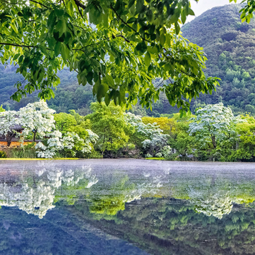 밀양 8경 중에 하나로 손꼽히는 밀양 위양지는 저수지 한가운데 5개의 작은 섬과 완재정이라는 작은 정자들로 이루어져 있습니다. 사계절이 아름다운 곳이지만 이팝나무꽃이 활짝 핀 봄이면 저수지에 완재정과 이팝꽃이 거울처럼 반사되는 풍경이 아름답다고 합니다. "달의 연인, 보보경심려"등으로 드라마 촬영지로 알려진 밀양 위양지는 신라시대 때 논농사에 물을 사용하기 위해 만들어졌다고 합니다.